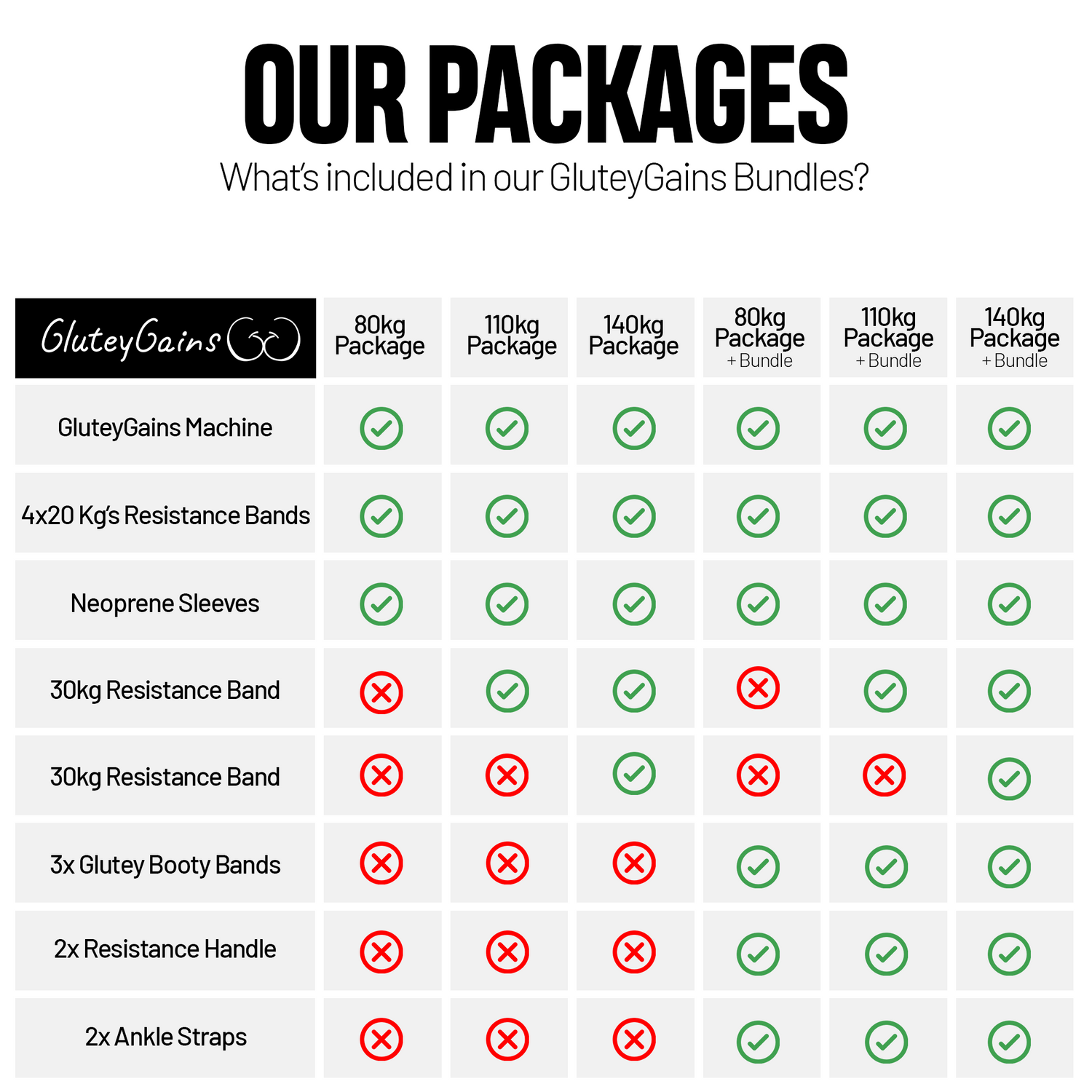 To effectively work out your glutes, very high resistance is required. GluteyGains comes with 80kg of resistance with the option of additional 30kg bands. GluteyGains is built for Beginners, Intermediate and Expert level of lifters.